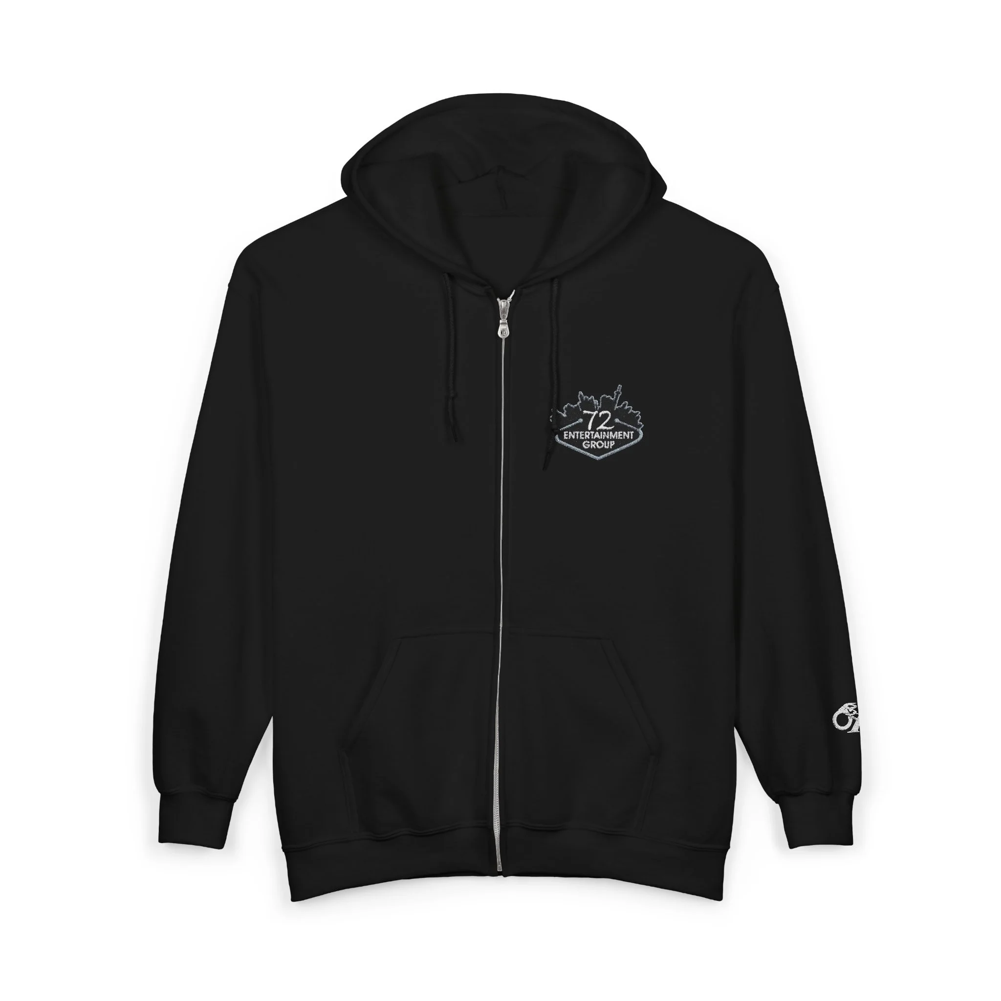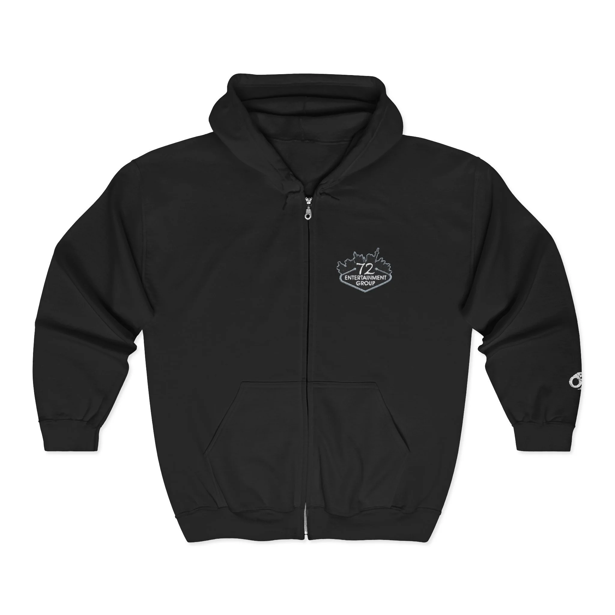 This classic full-zip hoodie feels like a quiet companion for long drives, early-morning coffee runs, and late-night study sessions. The clean black canvas makes the subtle embroidered crest on the left chest and the discreet sleeve detail stand out without shouting. The hood’s drawstring and roomy front pockets make it practical for chilly commutes, while the metal zipper adds a reassuring weight when you zip up against wind. It wears like a lived-in favorite from the first go — warm, steady, and dependable.